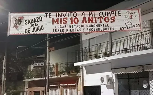 “A 10 años de tu ‘B’elorio”, “Riber: ni la pandemia pudo borrar tu descenso” y “Sábado 26 de junio. Te invito a mi cumple, 10 añitos. Lugar: Estadio Mudomental. Traer piedras y encendedores. Los esperamos”, fueron algunos de los mensajes. Mirá los afiches: