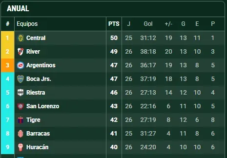 Es importante que Boca gane también para no dejar que se acerquen más equipos a la pelea. Por ejemplo, Argentinos Juniors aprovechó la caída del Xeneize con su triunfo ante Aldosivi y logró alcanzarlo. Riestra le ganó a River y se estacionó a un solo punto del equipo de Russo ocupando el 5° lugar en la anual.