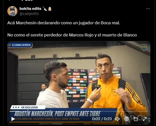 Después de este último partido, quien habló fue Agustín Marchesín en el canal de Boca. Y el arquero titular del Xeneize dejó una llamativa frase que fue celebrada por los hinchas en redes sociales.