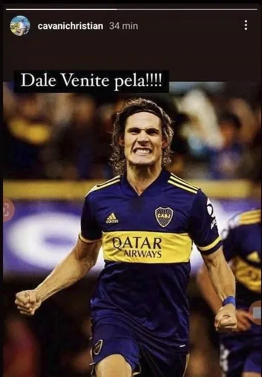 Fue en su cuenta personal de Instagram donde subió una foto editada de Edinson con la camiseta de Boca y dejó el simple pero efectivo mensaje: “Dale venite, Pela”. Y los hinchas que guardaban cautela, ahora sí: son todo ilusión sobre la chance del uruguayo.
