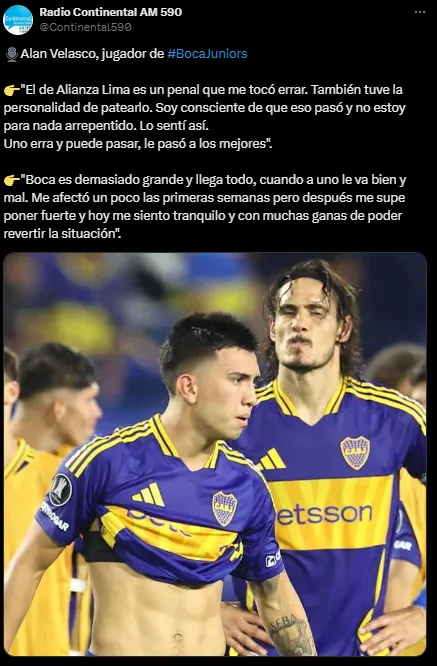 Quedó marcado por errar el último penal ante Alianza Lima, que significó la eliminación de Boca en la Copa Libertadores 2025. “Tuve la personalidad de patearlo. Soy consciente de que eso pasó y no estoy para nada arrepentido. Lo sentí así. Uno erra y puede pasar, le pasó a los mejores“, explicó el ex Independiente en diálogo con Radio Continental.