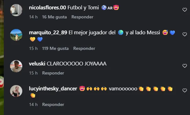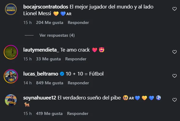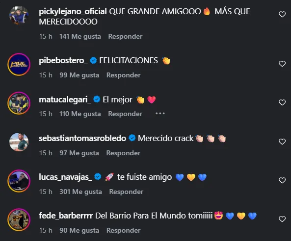El posteo se inundó de respuesta de los hinchas, conmovidos por las imágenes de la joya del club. “Felicitaciones“, “El mejor” y “Merecido crack” son algunos de los comentarios de los simpatizantes en Instagram.