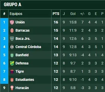 Con este resultado, el cuadro de la Ribera se mantiene en la zona de clasificación. En esta ocasión, consiguió solamente un punto y el equipo de Russo llegó a 14 puntos al igual que su rival y continúa en el tercer lugar de la tabla. Unión lidera este grupo con 16 unidades y Barracas Central, aparece como escolta, con 15 puntos.