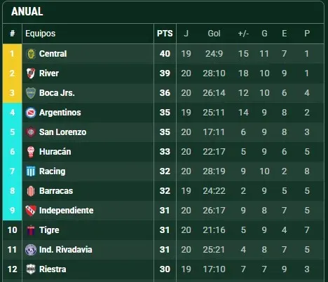 Sin chances en el plano internacional y eliminados en la Copa Argentina, el foco está puesto en la Tabla Anual. Por el momento, está en zona de clasificación, pero en el Único Grande no deben relajarse, ya que en las próximas horas el panorama podría cambiar por completo.
