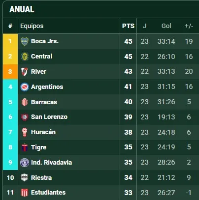 Una de las pocas vías que le quedan para conseguir uno de estos cupos se da mediante la Tabla Anual, que ya tuvo sus modificaciones. Con este reciente triunfo ante los dirigidos por Mariano Charlier, Boca escaló momentáneamente a lo más alto con 45 unidades.