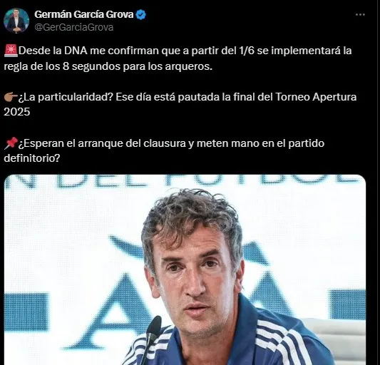 Según reveló el periodista Germán García Grova, la nueva regla se comenzará a aplicar en el fútbol argentino a partir del 1 de junio del 2025. Y la particularidad es que ese mismo día es la final del Torneo Apertura actual.