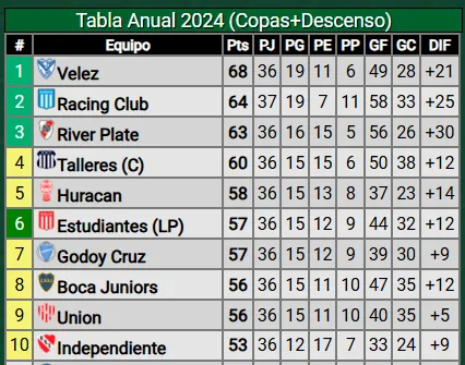 El Xeneize podría verse beneficiado producto de dos resultados que pueden darse a fin de año. Si Vélez gana la Liga Profesional y Racing la Copa Sudamericana, liberarán dos cupos para la próxima Copa Libertadores, haciendo que el equipo de Fernando Gago pueda clasificarse estando 5° en la tabla anual y no 3°.