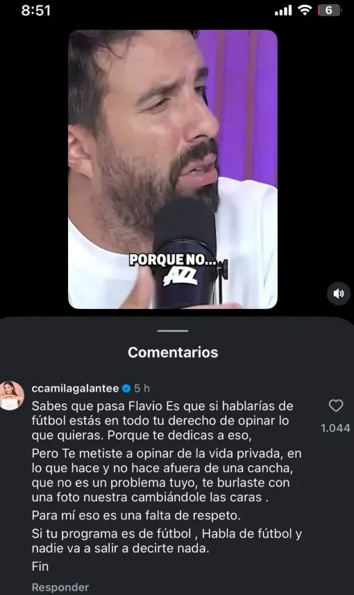 Camila Galante ya había disparado contra Flavio Azzaro en una historia de Instagram respondiéndole directamente con varias fotos de la Selección Argentina levantando títulos. Pero ahora, ante la respuesta del periodista lanzó un nuevo contraataque.