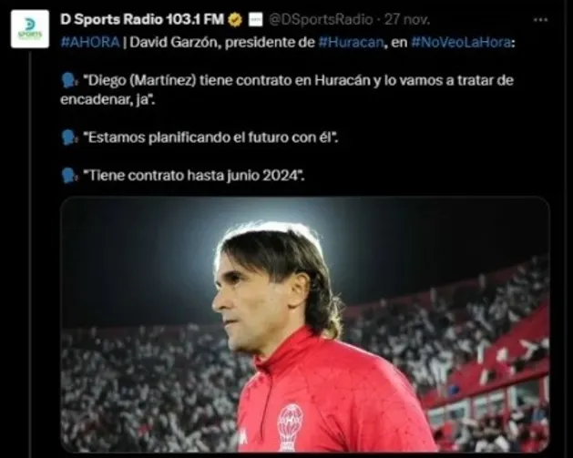 Las últimas semanas, el nombre de Diego Martínez comenzó a surgir como una posibilidad para el banco de Boca. De esta manera, así lo remarcó Emiliano Raddi en ESPN: “No lo sacaría para nada a Diego Martínez del listado. Yo sé que Diego Martínez es muy posible que deje Huracán a fin de año. Pero no sé si por Boca o por Racing“.