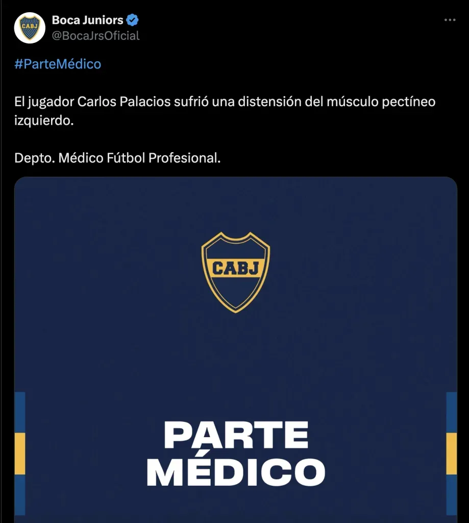 Carlos Palacios se sometió a estudios por una molestia muscular en el entrenamiento de este jueves. Y hace instantes, Boca sacó un parte médico oficial con la lesión que tiene el delantero: una distensión del izquierdo.