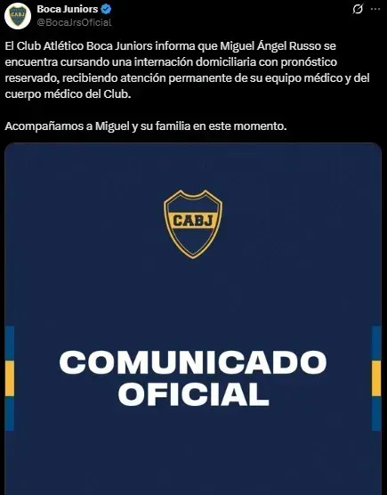 El mundo Boca está muy atento a la salud de Miguel Ángel Russo. El entrenador se encuentra en su casa y este lunes, desde las redes oficiales del Xeneize emitieron un comunicado para contar cómo se encuentra el entrenador.