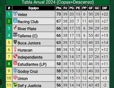 Después de la victoria contra Gimnasia de local, Boca sacó 3 puntos importantes en su lucha por clasificar a la Copa Libertadores 2025 a través de la tabla anual. Y ahora, quedó en el quinto lugar con 63 unidades, a tan solo 3 puntos de Talleres, quien estaría obteniendo el último boleto.