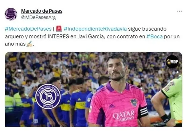 Javi García dejaría su lugar de arquero suplente de Boca en este 2024 para que Leandro Brey tome más protagonismo en la primera división del Xeneize. Por ello, un club del fútbol argentino se interesó en contratar al arquero azul y oro: Independiente Rivadavia de Mendoza.