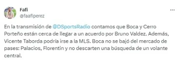 Sin embargo, su llegada no es nada facil y un actual jugador de Boca podría estar involucrado en el pase: Vicente Taborda. ¿Por qué? El mediocampista tendría ofertas de la MLS y su salida le permitiría a Boca tener una ventana más para traer a un jugador. Cabe recordar que la venta de Bruno Valdez sería utilizada para traer a Carlos Palacios.