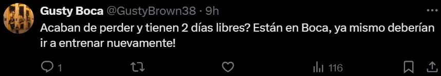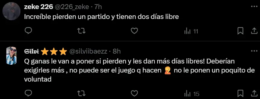 Luego de la derrota de Boca, Claudio Úbeda tomó una polémica medida con el plantel. Después del partido en Florencio Varela, el Sifón decidió darles el domingo y lunes libre, algo habitual si se mira hacia atrás. Sin embargo, por el rendimiento mostrado, varios hinchas estallaron por la decisión y las redes criticaron la decisión. “Increíble, pierden un partido y tienen dos días libres”, “Es siempre lo mismo, todo sigue igual” y “Es una vergüenza, todo una joda”, fueron algunos de los comentarios que postearon los fanáticos en las redes.