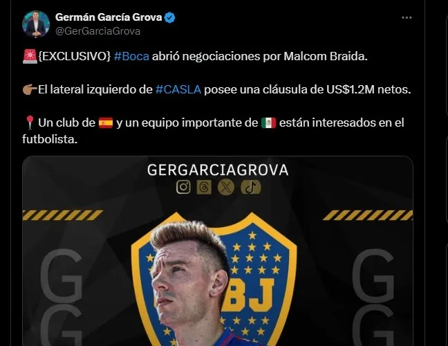 El periodista Germán García Grova dio detalles de esto. Y a su vez, remarcó que hay otros 2 competidores por el lateral/volante: un club de España y otro importante de México.