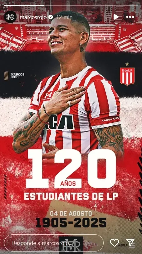 En el mientras tanto, Rojo subió una historia que llamó la atención. Y se trata de una foto en donde le dedicó un saludo Estudiantes de la Plata por el cumpleaños 120 del club.