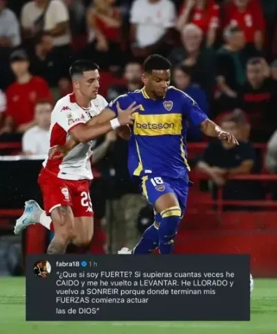 En el partido de Boca contra Huracán, Frank Fabra regresó a la titularidad después de varios meses. Y, tras esto, el colombiano subió un emotivo posteo a sus redes sociales: “¿Qué si soy FUERTE? Si supieras cuantas veces he CAÍDO y me he vuelto a LEVANTAR. He LLORADO y vuelvo a SONREÍR porque donde terminan mis FUERZAS comienza actuar las de DIOS“.