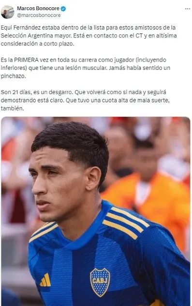 Sin embargo, no fue la única noticia que envolvió al juvenil de Boca. Y es que, según pudo informar el periodista Marcos Bonocore, Fernández iba a ser citado para la Selección Argentina de Lionel Scaloni para los amistosos de este mes de marzo frente a El Salvador y Costa Rica. ¿Podrá tener nuevamente la chance?
