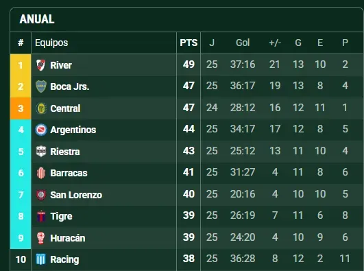 Con el empate ante Central Córdoba, Boca quedó segundo en la tabla anual del fútbol argentino. Por detrás de nada menos que River Plate por dos unidades. Y de momento, el Xeneize se estaría clasificando a la Copa Libertadores del 2026.