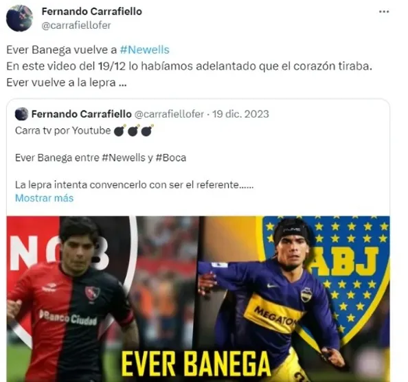Éver Banega es uno de los posibles refuerzos de Boca para este 2024. Sin embargo, el volante todavía no ha llegado al Xeneize por un motivo: debe arreglar su salida en condición de libre del Al Shabab de Arabia Saudita (le quedan 6 meses de contrato). Sumado a esto, en las últimas horas, surgió el rumor de que Newell´s también lo pretendía, situación que obviamente preocupó al conjunto de la Ribera.