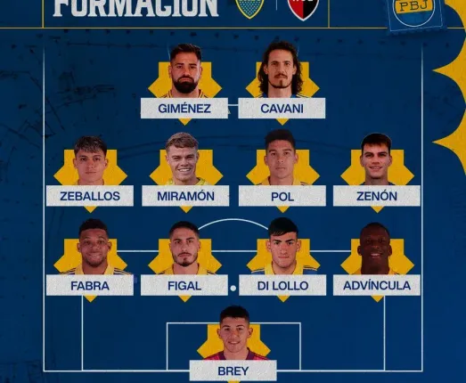 El Xeneize tiene todo listo y formará con: Leandro Brey; Luis Advíncula, Lautaro Di Lollo, Nicolás Figal, Frank Fabra; Ignacio Miramón, Pol Fernández; Kevin Zenón, Milton Giménez, Edinson Cavani y Exequiel Zeballos.