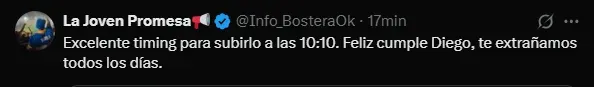 A su vez, la particularidad del video es que fue publicado ni más ni menos que a las 10:10 horas. Se trata de un horario pensado, haciendo alusión a la camiseta que vistió a lo largo de toda su carrera y que representa al ídolo del Único Grande.