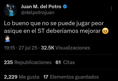 El extenista, atento al partido, dio su visión en redes sociales y soltó un claro mensaje en "X".