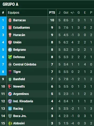 El Torneo Clausura ya lleva cinco fechas disputadas y Boca se encuentra en la parte baja de la Zona A. Con 3 puntos conseguidos en el arranque del campeonato, está alejado de la zona de clasificación. Su último compromiso fue ante Racing, partido en el que igualó 1-1 en La Bombonera.