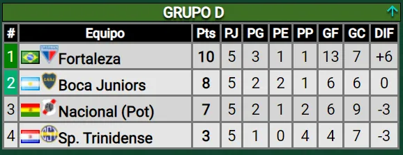 De momento, el equipo de Diego Martínez es escolta en el Grupo D por detrás de Fortaleza. Para terminar siendo líder, tiene que ganarle a Nacional Potosí y esperar que el conjunto brasilero sea derrotado de local contra Sportivo Trinidense. En caso de que el Tricolor de Acero iguale, el cuadro de la Ribera tendrá que golear en su partido, por la diferencia de gol, para terminar primero.