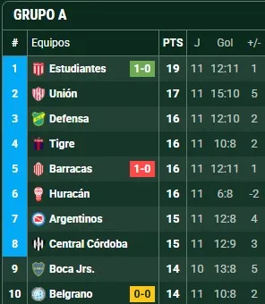 Estudiantes y Barracas Central igualaron 1-1 en UNO. Si Boca supera a Newell's en La Bombonera, se convertirá en el líder de la Zona A.