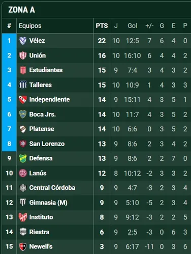 Así quedó la tabla en la Zona A
