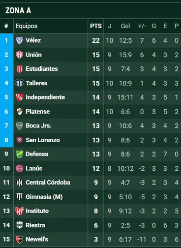 Así está la tabla de posiciones en la Zona A
