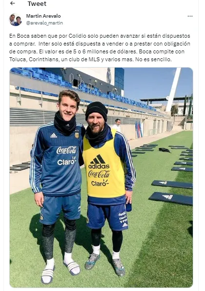 Colidio fue vendido al Inter de Milan desde la Reserva de Boca. Y ahora podría ser el Xeneize el que desembolse una nueva suma. El equipo italiano ya avisó: “En Boca saben que por Colidio solo pueden avanzar si están dispuestos a comprar. Inter está dispuesto a vender o prestar con obligación de compra”.