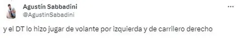 Mientras que otros también se expresaron en contra de la decisión de Diego Martínez y el puesto en el que ubicó al juvenil. “Y nunca lo pusieron en su posición” o “Y el DT lo hizo jugar de volante por izquierda y carrilero derecho”, fueron otros de los descargos por parte de los simpatizantes del Único Grande.