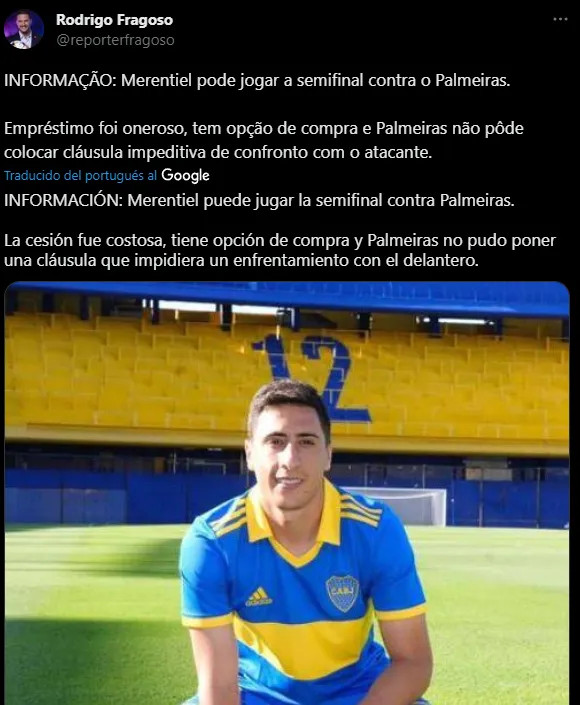 ¿De qué se trata? Miguel Merentiel pertenece a Palmeiras y está en Boca a préstamo hasta diciembre. Ante las consultas de los hinchas, varios medios brasileños aclararon que la “Bestia” está habilitado para jugar la serie porque no hay ninguna cláusula que lo impida. Y eso generó el fastidio de los fanáticos del equipo verde.