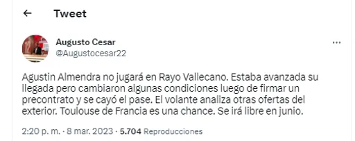 Pero la operación se cayó y finalmente su destino no estará en el equipo español. Más allá del preacuerdo, algunas condiciones habrían cambiado e hicieron que el pase se caiga definitivamente. Aunque su destino podría estar en otro club del viejo continente.