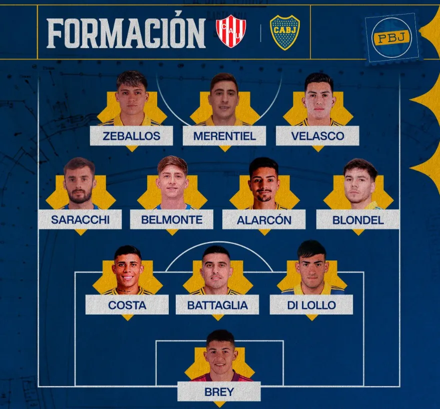 En la delantera, Miguel Merentiel tomó el lugar de Edinson Cavani y Zeballos se mantuvo en su extremo. Del otro lado, Alan Velasco tendrá su primer partido como titular con la camiseta de Boca tras debutar ante Argentinos en La Bombonera.