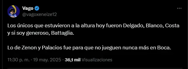 La eliminación de Boca ante Independiente por el Torneo Apertura dejó varios rendimientos individuales muy flojos. Sin embargo, el hincha, en general, destacó a dos jugadores que no dieron la talla por sobre el resto: Carlos Palacios y Kevin Zenón.