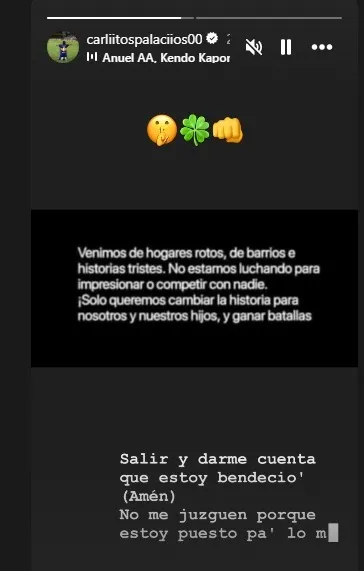 Y reflexionó: “Venimos de hogares rotos, de barrios e historias tristes. No estamos luchando para impresionar o competir con nadie. ¡Solo queremos cambiar la historia para nosotros, nuestros hijos y ganar batallas!“. Y a esto, le agregó una canción del trapero Anuel AA de fondo llamada “Antes y Después“.