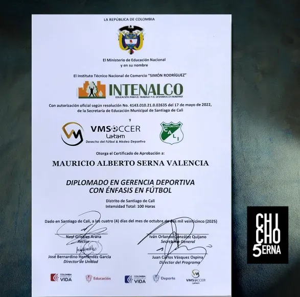 Lejos del Xeneize, Chicho continuó formándose y en los últimos días compartió que recibió un diploma en Gerencia Deportiva con especialización en fútbol. Lo hizo en el Instituto Nacional de Comercio Simón Rodríguez de Santiago de Cali.