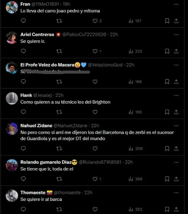 El Brighton del Colo Barco no está en su mejor momento. El equipo inglés empató frente a Burnley por la Premier League, anteúltimo equipo en la tabla, y acumula ya 4 partidos consecutivos sin conocer la victoria. Tras esto Roberto De Zerbi, DT de las Gaviotas, fue duramente criticado por sus hinchas en las redes sociales.