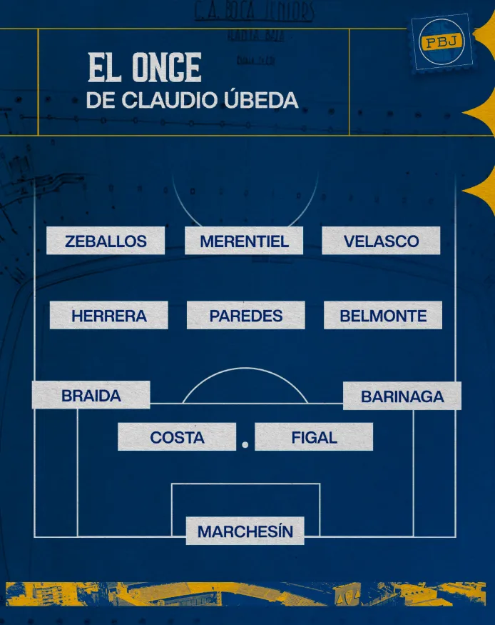 Según reveló el periodista Emiliano Raddi de Planeta Boca Juniors, el Xeneize trabajó este sábado por la mañana con el siguiente equipo: Agustín Marchesín; Juan Barinaga, Lautaro Di Lollo, Nicolás Figal, Malcom Braida; Ander Herrera, Tomás Belmonte, Leandro Paredes; Alan Velasco, Miguel Merentiel, Exequiel Zeballos.