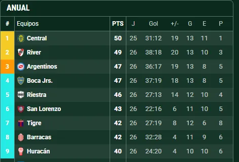 La primera es a través de la tabla anual donde, a falta de 6 fechas, el equipo está 4° con 47 unidades por debajo de Argentinos (47), River (49) y Rosario Central (50). Si el Xeneize no logra quedar entre los tres primeros de esa nómina pero clasifica a los playoffs del Clausura, deberá ganarlo.