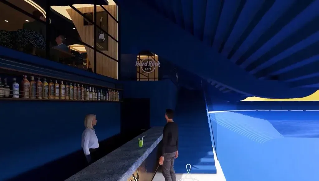 El restaurante se ubicará en el primer piso de La Bombonera, con acceso desde el hall de Brandsen 805. Además de tener el clásico estilo de la marca Hard Rock, contará con una decoración en torno al azul y oro y su gran novedad será la barra en la popular sur baja, con mesas que tendrán vistas al campo de juego.