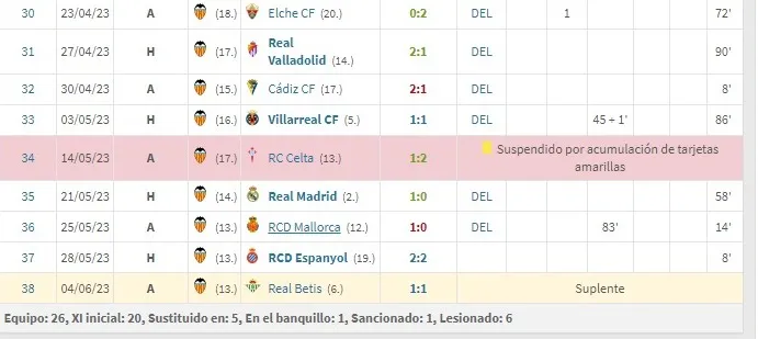 Dicho esta salvedad, es necesario decir que el último partido de Cavani fue en Valencia hace Espnayol de Barcelona el 28 de mayo pasado por la fecha 37 de La Liga, encuentro en donde disputó tan solo 8´ minutos entrando en el segundo tiempo.