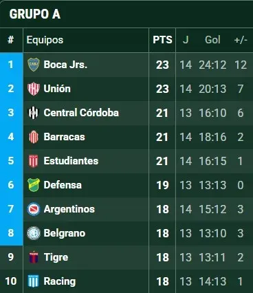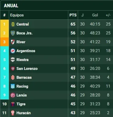 Con estos resultados, el Único Grande se afirmó en el segundo lugar con 56 unidades, le sacó cuatro puntos de diferencia al rival de toda la vida y está a tan solo unos puntos de sacar su boleto a la cita continental. Quedan seis puntos en juego y Boca puede asegurar su clasificación, ni más ni menos que ante el equipo de Marcelo Gallardo en La Bombonera.