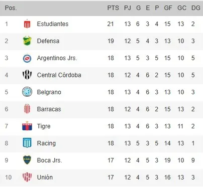 Hasta el momento, se ubica en el noveno lugar con 17 unidades, a la espera del partido del miércoles entre Huracán y Central Córdoba de Santiago del Estero. El empate entre Barracas Central y Tigre dejaron a los dirigidos por Úbeda fuera de la zona de clasificación.