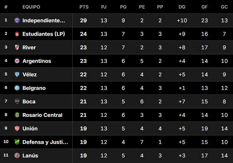 Por otro lado, el conjunto azul y oro sumó un punto que lo mantiene en la pelea por la Tabla Anual. En caso de no conseguir títulos, esta tabla será fundamental para la clasificación a las copas internacionales en 2027. Por el momento, está en Zona de Copa Sudamericana con 21 puntos.