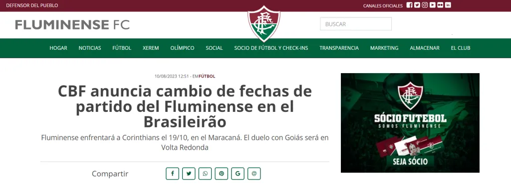De esta manera, Fluminense, en cierto punto, se ve afectado con que frente a Goiás el 25 de octubre, en su partido correspondiente a la jornada 29 del Brasileirao, tendrá que hacerlo fuera del Maracaná (de hecho, en su sitio oficial, Flu anunció que finalmente se llevará a cabo en el Estadio Raulino de Oliveira, en Volta Redonda, a 150 kilómetros del centro de la ciudad de Río de Janeiro).